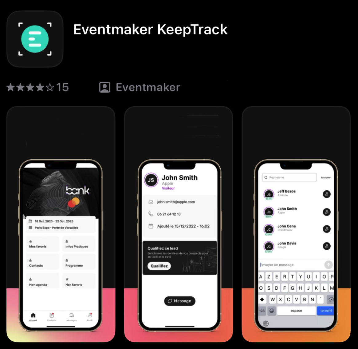 Find the list of participants by downloading the Eventmaker KeepTrack app.